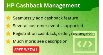 HP Cashback Management HP Cashback Management is a module that will bring the cashback feature to your opencart online store. There are 3 cash...