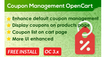 HP Coupon Management for OpenCart Automatically improving built-in coupon feature on your OpenCart online store. Improved UI/UX so that custom...