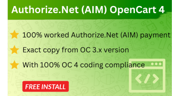 Seamless Authorize.Net (AIM) payment setup on your OpenCart 4 with this Authorize.Net (AIM) payment extension. Why? It's exact copy, 100%...